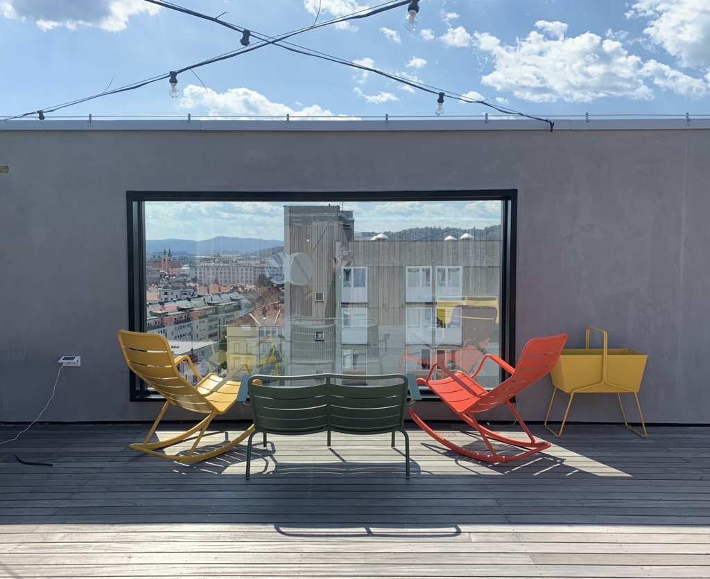 - Najem prostora za dogodke: Organiziramo poslovne sestanke, konference ali družabne dogodke v dveh modernih sejnih sobah ali edinstvenem prostoru na prenovljeni strehi s 250 m2 površine.
