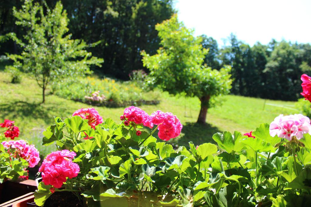 Okolica je mirna z bujnim vrtom in gozdovi. Ob jasnem vremenu lahko uživate v lepih razgledih na gore. V polmeru 300 m ni nobene hiše. Nudimo možnost nakupa lokalnih sezonskih pridelkov (sadje, zelenjava, mleko, jajca itd.).