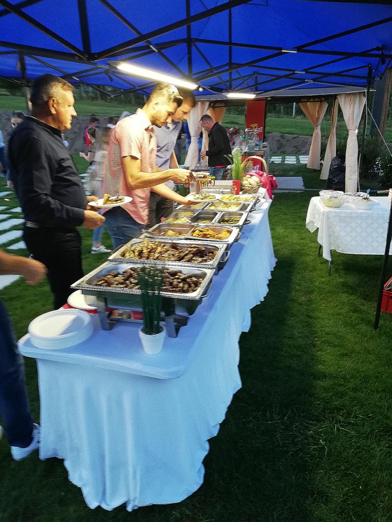 Za brezskrbno praznovanje vam po naročilu oz. po dogovoru pripravimo jedi z prevzemom na našem naslovu , po dogovoru jedi tudi dostavimo ali pa vam našo storitev izvedemo na samem kraju dogajanja kot so : Sprejem svatov,piknik poroke, rojstni dnevi , birme , obhajila, fantovščne, dekliščine,upokojenska srečanja itd..Prisotni tudi na raznih prireditvah : Veselice, motoristični zbori, otvoritve, obletnice podjetij itd...Na željo naročnika izvedemo kompletno gostinsko storitev z napitki.