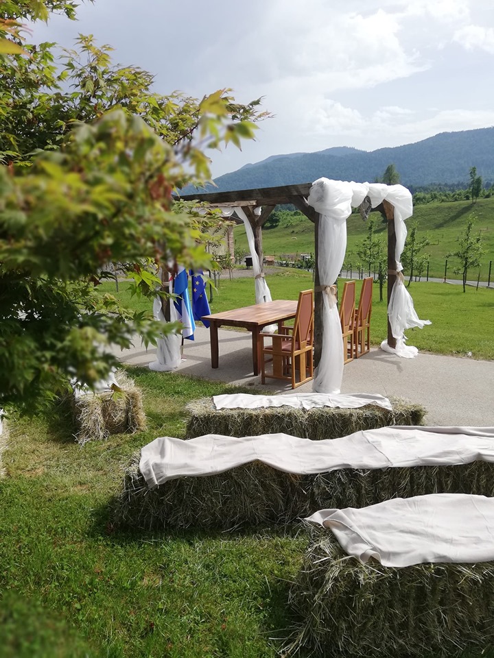 Dvorana z naravno svetlobo in pravim vzdušjem, možnost civilne poroke v Rustikalnem - Vestern stilu in veliko možnosti za nepozabno poročno fotografiranje.